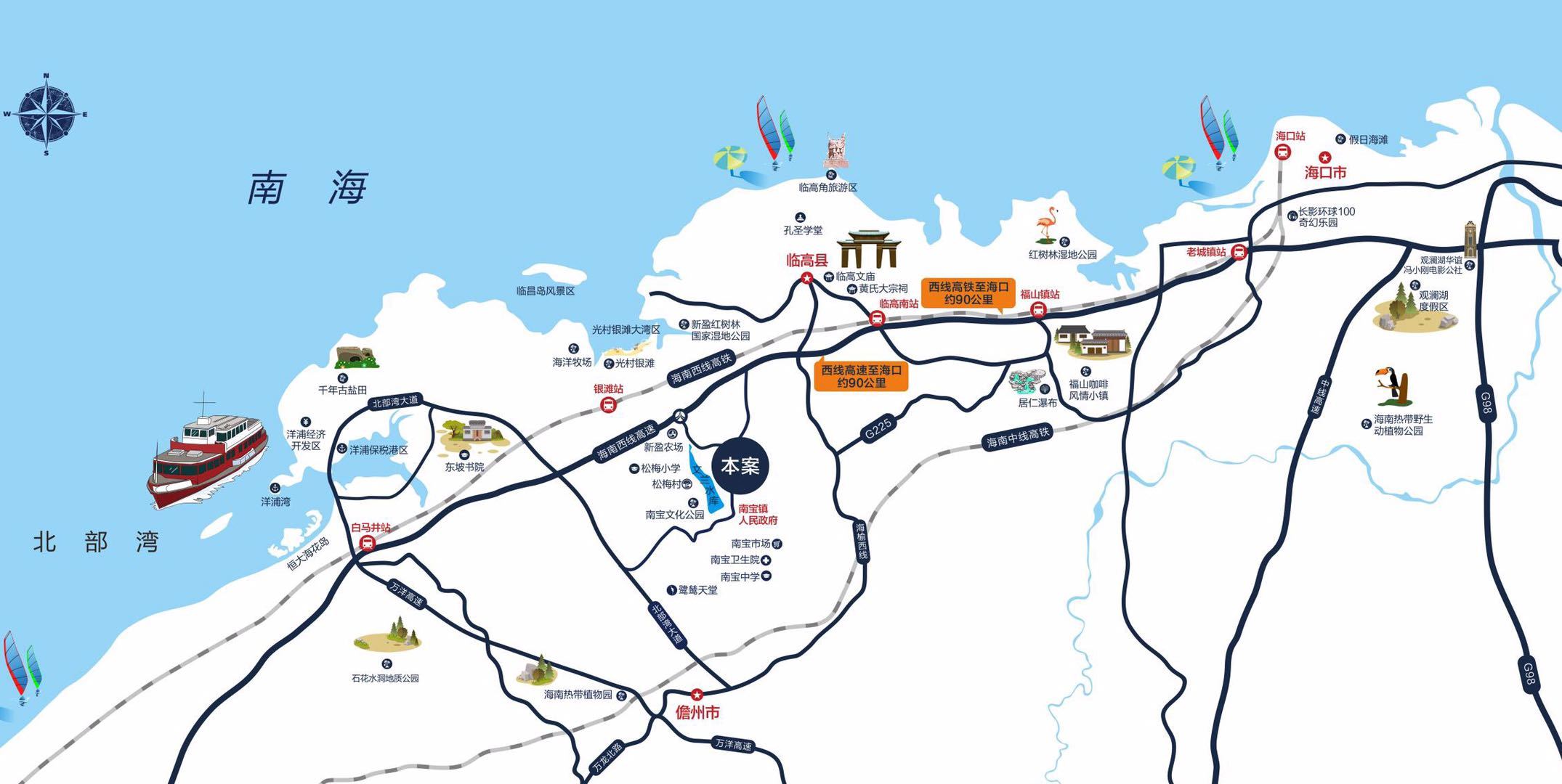 临高地处两大经济开发区间,一是洋浦经济开发区,享受全国保税区政策。二是临高金 牌港经济开发区,打造成海南现代化港口新区。项目布局儋州与临高的“金三角” 2大高铁站无缝连接全岛。