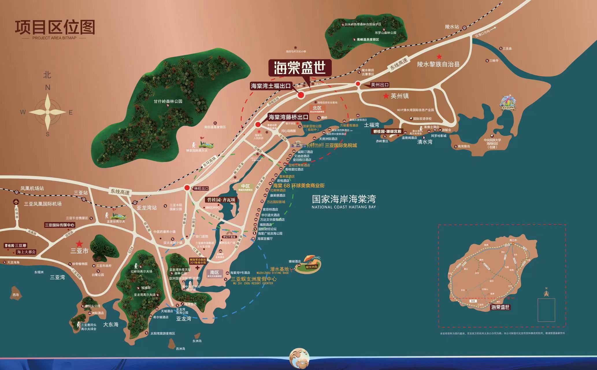 交通:紧邻东线高速;连接亚龙湾站高铁站、三亚凤凰国际机场