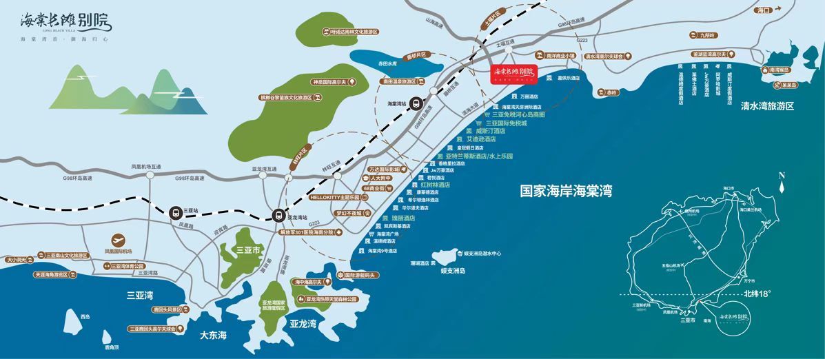国策南拓,北纬18°的三亚,海棠湾荣封“国家海岸”, 拥揽22公里绝美海岸线,年平均气温25.8℃。在不断丰盈的城市发展之下,海棠湾成为中国滨海度假区的价值点,聚合一湾珍贵资源,一个面向世界的新时代湾区,未来发展不可限量。