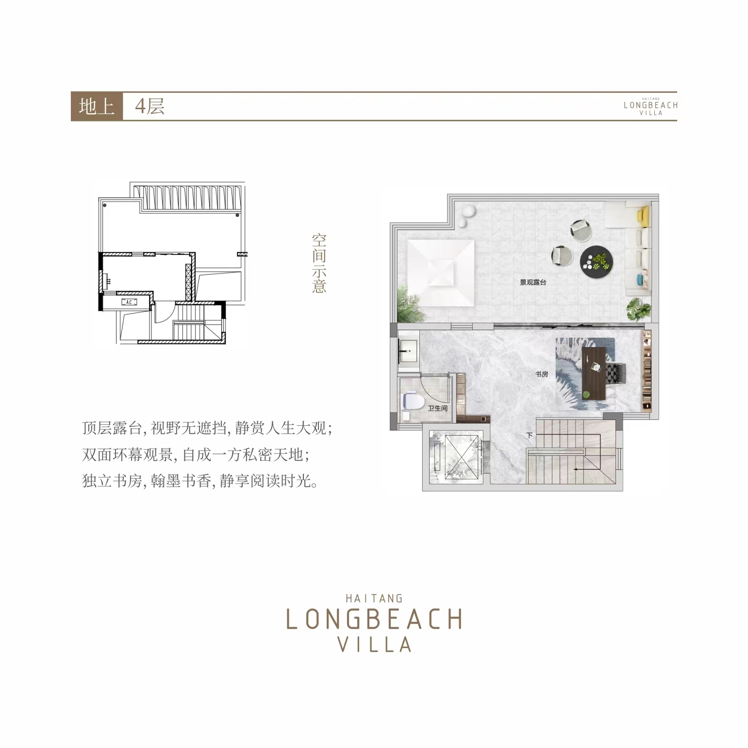 三级台地,北高南低,无遮挡海景