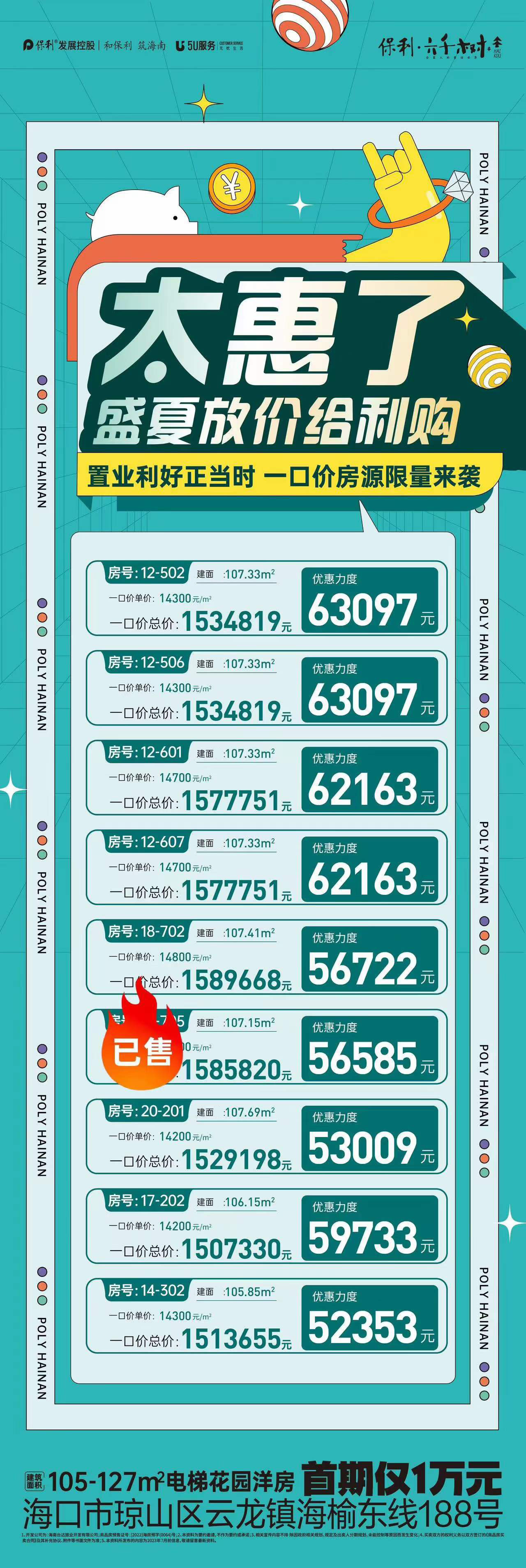 【盛夏放“价”】海口保利六千树一口价房源在售,总价150.7万元/套
