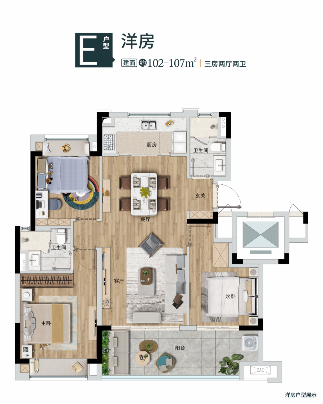 建面102-107㎡三房两厅两卫洋房产品在售
