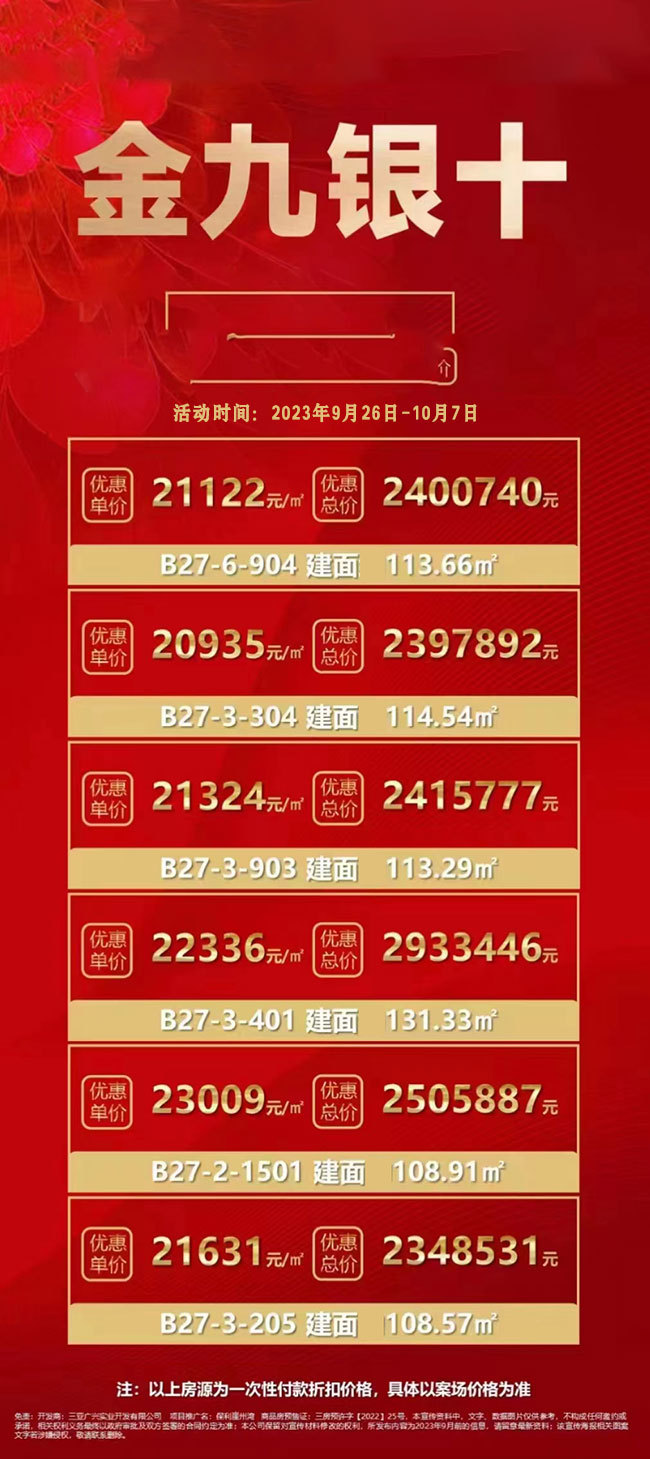 2023-09-26 文章来源:房小二 价格有效期(2023-09-26至2023-09-30)